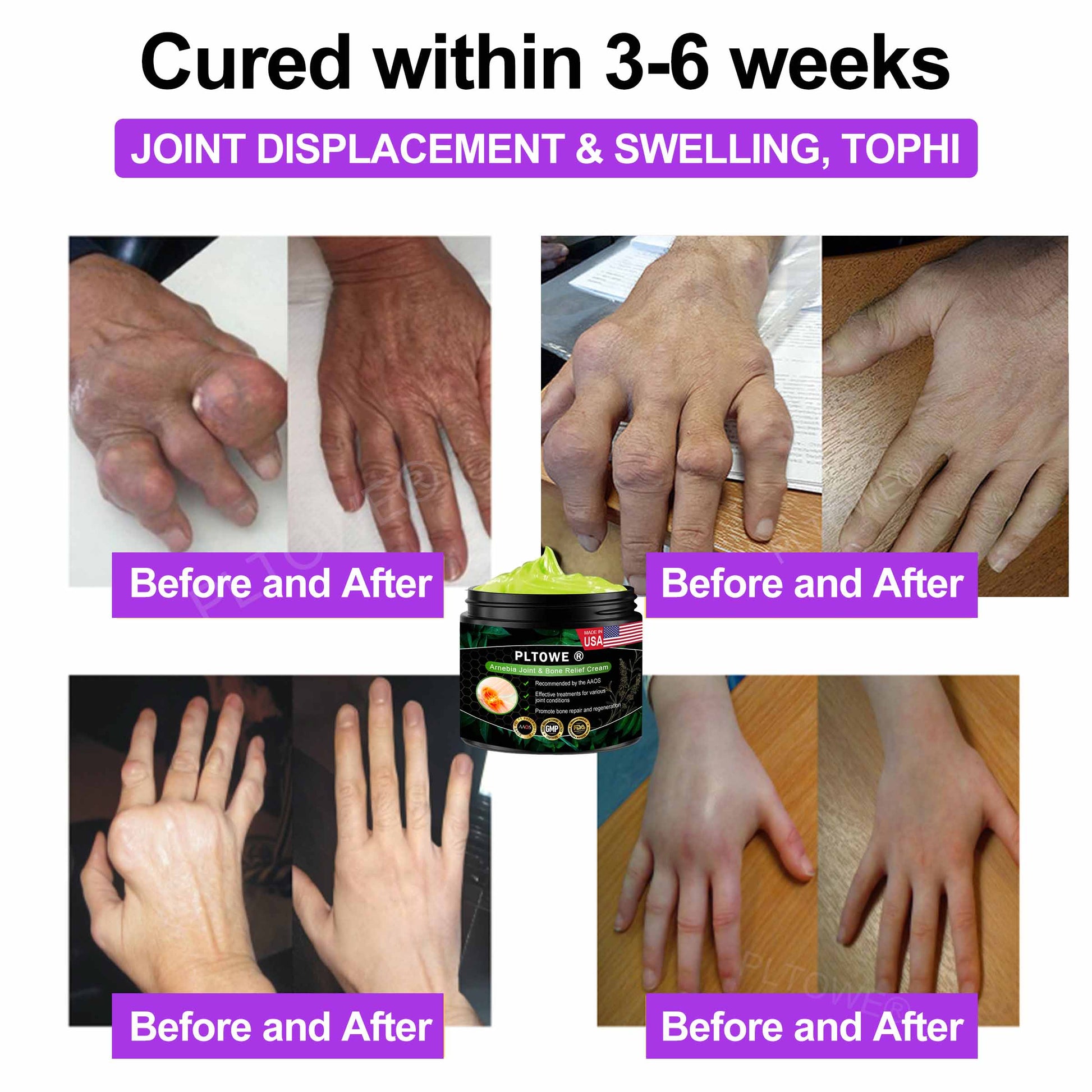"I suffer from advanced gout in my feet, which caused severe swelling and unbearable pain in my toes. The stiffness made it difficult to walk, and I even considered surgery, but the high cost led me to look for other treatment options. I consulted my orthopedic surgeon, who recommended this PLTOWE® Arnebia Joint & Bone Relief Cream. After using it for a week, the swelling in my joints started to go down, and my toes became more flexible. After two months of continued use, my feet recovered, which is fantastic! I’ll keep buying it to make sure the gout doesn’t return!" - John Smith, 2950 Middleville Road, Los Angeles, USA.