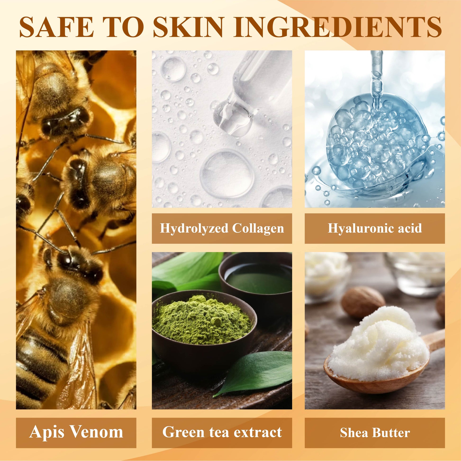 Az Apis méreg peptidek antioxidáns tulajdonságokkal is rendelkeznek, amelyek segítenek lelassítani az öregedési folyamatot és fiatalosabb megjelenést biztosítanak. A következetes használat után a felhasználók feszesebb arcvonásokat és ragyogóbb arcszínt tapasztaltak. Ez az átfogó kezelés hatékonyan küzd az öregedés látható jelei ellen, simább és megújult bőrt hagyva.