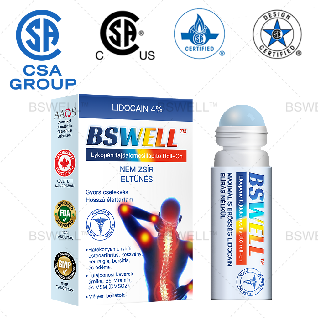 Akkor a BSWELL™ Lidokain Fájdalomcsillapító Roll-On Gél tökéletes Önnek! Szoros együttműködésben dolgoztunk a fájdalomkezelés és bőrregenerálás legjobb szakértőivel, hogy kifejlesszünk egy forradalmi terméket, amely kihasználja a lidokain fájdalomcsillapító és gyógyító erejét. A BSWELL™ Lidokain Gyors Hatású, Maximális Erősségű Fájdalomcsillapító Folyadék tökéletes kiegészítője különböző fájdalmak és kényelmetlenségek leküzdésében, lehetővé téve, hogy fájdalommentes, egészséges életet éljen, és élvezze a mindennapi kényelem és vitalitás érzését.