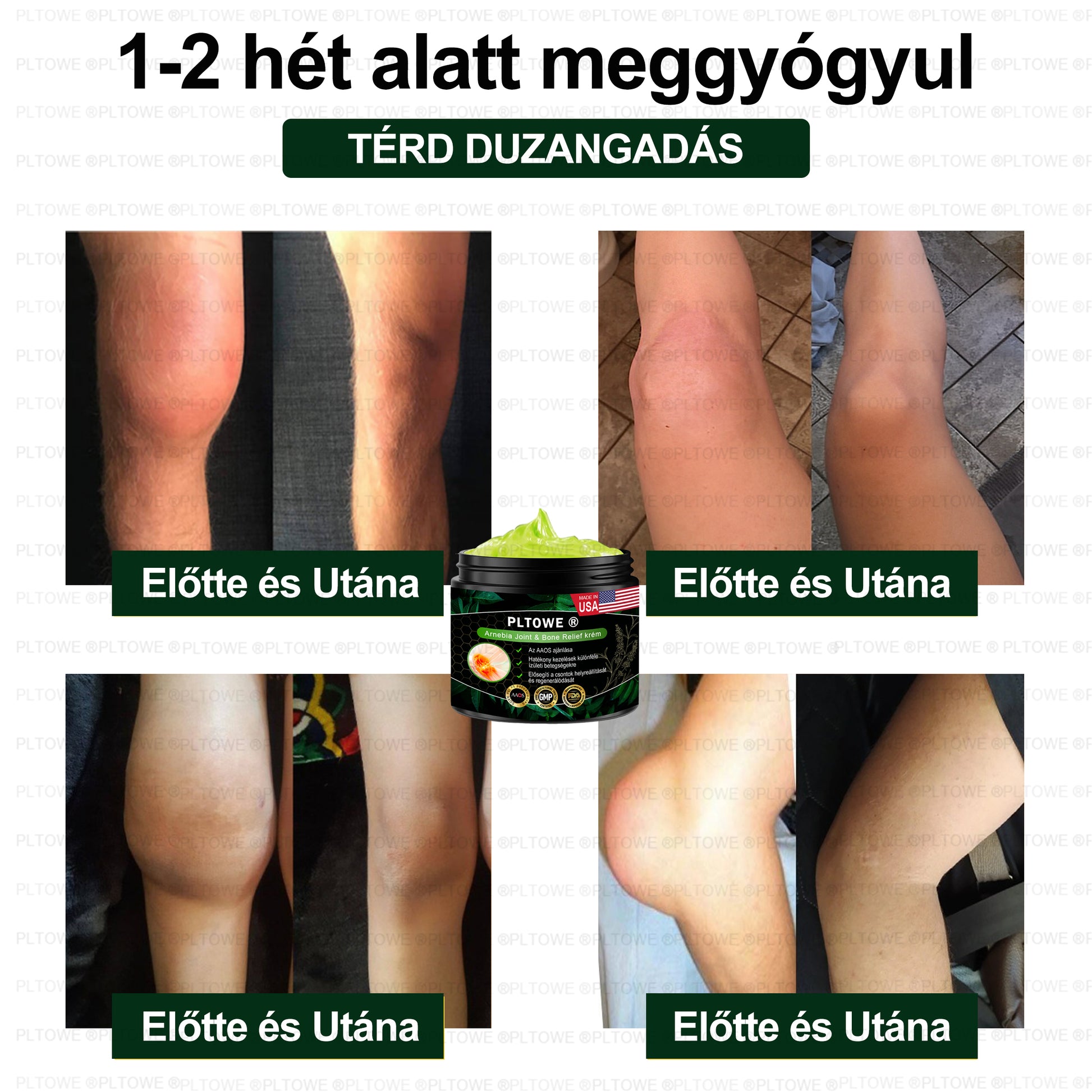 „Gouttól szenvedek a lábaimban, ami súlyos duzzanatot és elviselhetetlen fájdalmat okozott az ujjaimban. A merevség megnehezítette a járást, és már a műtétet fontolgattam, de a magas költségek miatt más kezelési lehetőségeket kerestem. Konzultáltam az ortopéd sebészimmel, aki ajánlotta ezt a PLTOWE® Arnebia Ízületi és Csontfájdalom Enyhítő Krém. Egy hét használat után a duzzanat csökkent az ízületeimben, és az ujjaim rugalmasabbá váltak. Két hónapos folyamatos használat után a lábaim felépültek, ami fantasztikus! Továbbra is vásárolni fogom, hogy a köszvény ne térjen vissza!” – John Smith, 2950 Middleville Road, Los Angeles, USA